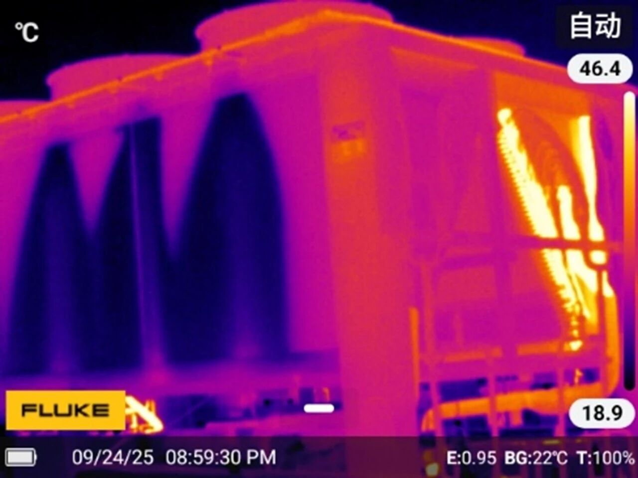 標準鏡頭熱像儀拍攝站 在同樣距離使用25°長焦鏡頭熱像儀拍攝