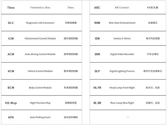 娛樂類:娛樂域控制、記錄儀、內外電子后視鏡、HUD、AR-HUD、音響系統、乘客監測等。