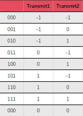 3B/2T編組:再進行3B/2T編組,每3bit數據(3B)編組成一對三進制符號(2T),并以66.66Msymbol/s的符號傳輸速率進行傳輸;