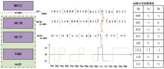 3B/2T:通過3B/2T進行波形調制成PAM-3格式輸出到網絡中。