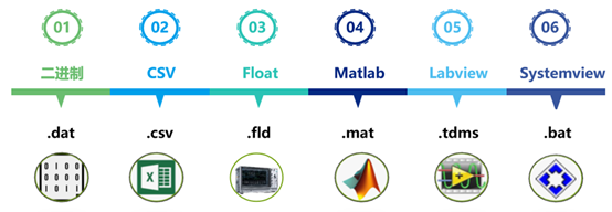除儀器自有格式外,ZDL系列支持導出二進制、CSV、Float、Matlab、LabVIEW、SystemView等常用標準格式,可直接對接數據分析工具或開發軟件,也支持數據二次回讀。