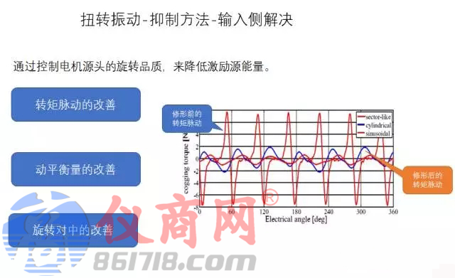 所謂輸入側改善,就是將改善電機的旋轉扭矩輸出的平穩性。一般電機的轉矩脈動、動不平衡、不對中都會影響旋轉穩定性,產生各種階次的激振力,這些激振力會沿著軸系傳遞,如果和某個零件的固有頻率接近,就會產生附加的共振響應。因此改善旋轉品質是有效避免問題的方法。