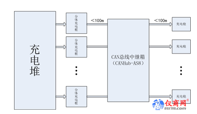 分體式充電樁往往一個充電堆配套十幾個充電樁,大電流線與通訊線并行、遠距離通訊和多路CAN總線通訊,要求中繼器具備以下特點:隔離干擾、良好的信號優化能力、多路CAN接口、能兼容不同波特率。