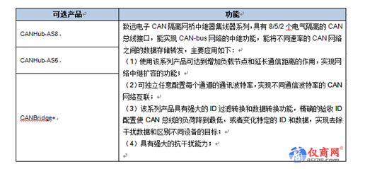 ZLG致遠電子CAN隔離網橋中繼器集線器系列,最大具有8個電氣隔離的CAN總線接口,能實現CAN-bus網絡的中繼功能,能調理中繼器兩邊的信號,使其實現最優通訊效果,并將不同速率的CAN網絡之間的數據存儲轉發,實現長距離通訊。
