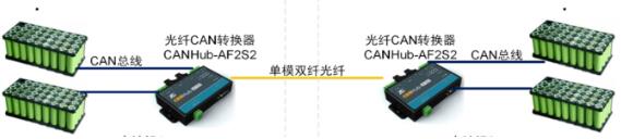 如圖所示,光纖是抗干擾能力最靠譜的通信方式之一,通過CAN轉(zhuǎn)光纖通訊,可以徹底隔離任何干擾。CANHub-AF2S2光纖CAN轉(zhuǎn)換器/集線器系列有2個光纖接口和2個電氣隔離的CAN接口,能實現(xiàn)不同速率的獨立CAN/光纖網(wǎng)絡(luò)之間的數(shù)據(jù)接收/轉(zhuǎn)發(fā)。