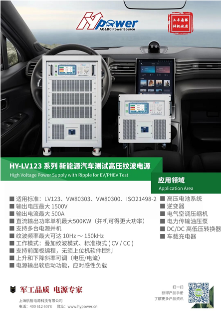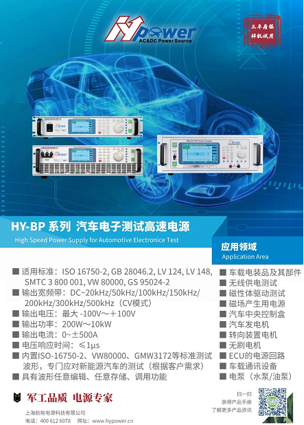 汽車的控制系統是以電子設備為基礎,作為智能汽車生態里最重要的一環,汽車電子設備的性能直接決定了整車的安全性和可靠性。航裕電源深入鉆研汽車電子測試環境,并不斷推出更多專用于汽車電子測試和新能源汽車高壓紋波測試的電源。