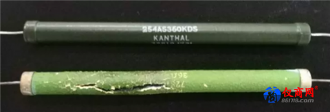 線繞電阻可能發生的情況是電阻絲被燒斷,導致電阻斷路;厚膜電阻的電阻膜層可能被蒸發,導致阻值的劇烈變化,且這種變化是不可逆的。
