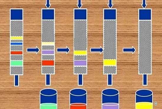 色譜法是一種分離分析方法。它利用樣品中各組分與流動相和固定相的作用力不同(吸附、分配、交換等性能上的差異),先將它們分離,后按一定順序檢測各組分及其含量的方法。