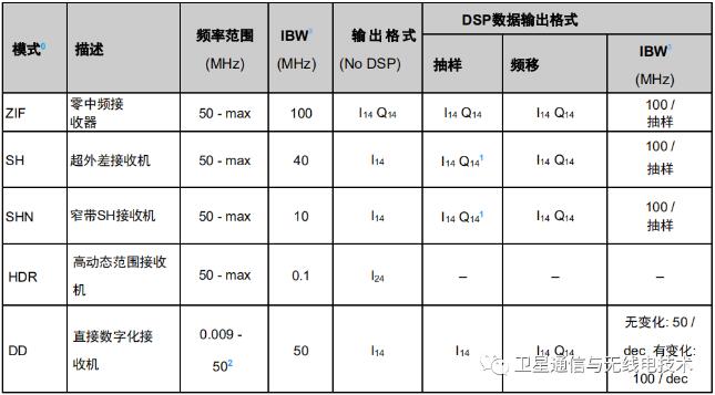 將以上3種接收機前端和R5x50內部數字化儀的2種ADC(窄帶和寬帶)進行組合就得到了不同的運行模式(對應不同的實時帶寬),從而滿足各種類型信號對分析帶寬等方面的要求。如下:
