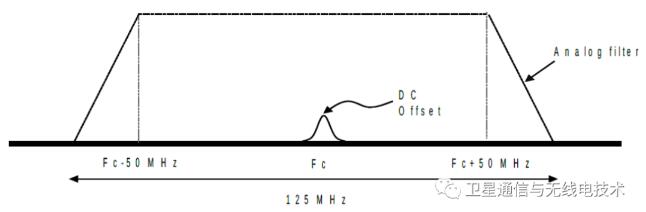 R55x0 的 WB ADC 采樣率為 125 MSa / s,中頻(IF)為 0,整個 IF 帶寬為 125MHz。模擬濾波器會導致在中心頻率 Fc 附近大約±50MHz 處出現幅度下降,如下圖所示: