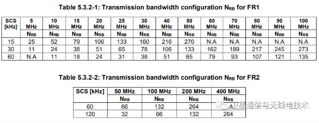 這一部分我們以5G NR的信道帶寬為例。對于5G FR1(sub-6GHz)頻段來說,信道帶寬最大100MHz;對于FR2(毫米波)頻段來說,信道帶寬最大400MHz。
