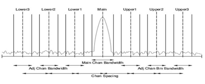 ACPR度量了干擾或者說是相鄰頻率信道功率的大小。通常定義為相鄰頻道(或偏移)內平均功率與發射信號頻道內的平均功率之比,ACPR描述了由于發射機硬件非線性造成的失真大小。