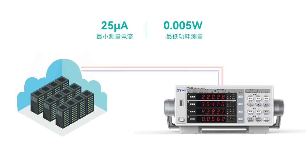 對微小電流的捕捉能力: 待機功耗是節能的關鍵。PA310的電流測量下限可達25μA,能準確測量服務器在“睡眠”狀態下的真實功耗。